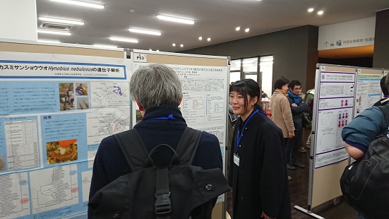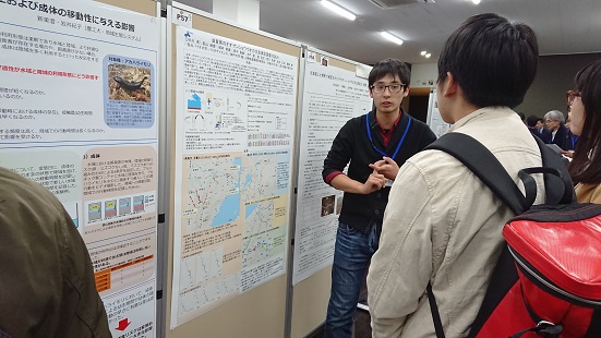 水戸先生が「カスミサンショウウオから見出された不凍タンパク質について」、片渕さんが「滋賀県北東部に生息するカスミサンショウウオ2集団の食性及び遺伝系統解析」、中川君が「滋賀県のオオサンショウウオの生息実態調査の試み」を発表しました。
