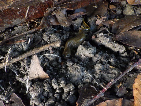 落ち葉などをひっくり返すと冬眠中のカスミサンショウウオの成体を見つけた。